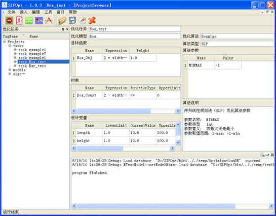 集成优化计算系统是一个开放的通用优化问题求解软件,可以用于求解单目标或多目标、连续设计变量和离散设计变量、线性或非线性复杂优化问题;已集成了BFGS、SLP、SQP、GA等多种优化算法。系统已实现试验设计、近似模型模拟、灵敏度分析、子系统、文本文件解析器等多种功能模块;提供均匀试验设计、正交试验设计、中心复合试验设计、析因试验设计等4种试验设计方法;响应面法、多二次径向基函数、高斯径向基函数、逆多二次径向基函数等4种近似模型拟合方法。
